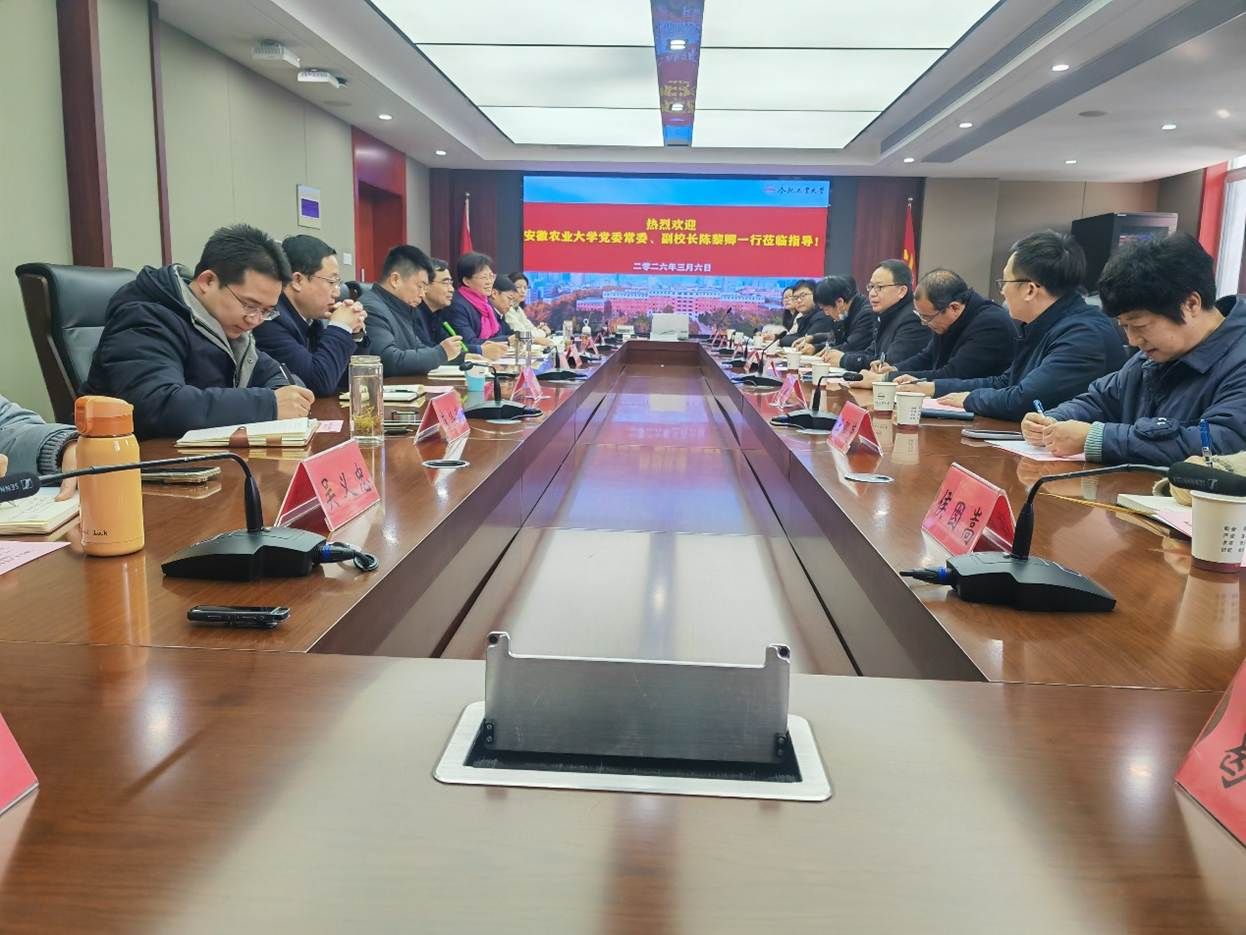 2026年3月6日上午,安徽农业大学党委常委、副校长陈黎卿率调研团莅临我校,围绕实验室建设与管理、大型仪器开放共享、实验技术队伍建设等重点工作开展专题调研。我校党委常委、副校长徐宝才主持座谈会,双方就相关工作深入交流、共促提升。